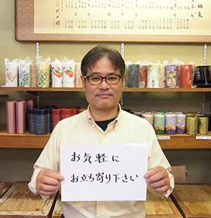 氏名:村田 和彦 好きな食べ物:お寿司、バームクーヘン 嫌いな食べ物:オクラ 趣味:オートバイ 日本茶販売歴:6年 特技:紙細工 |